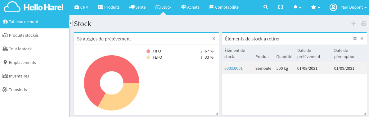 L'élément de stock est la brique élémentaire de votre stock. Il correspond à une partie d'un lot, prélevée à un moment donné, à un emplacement donné.